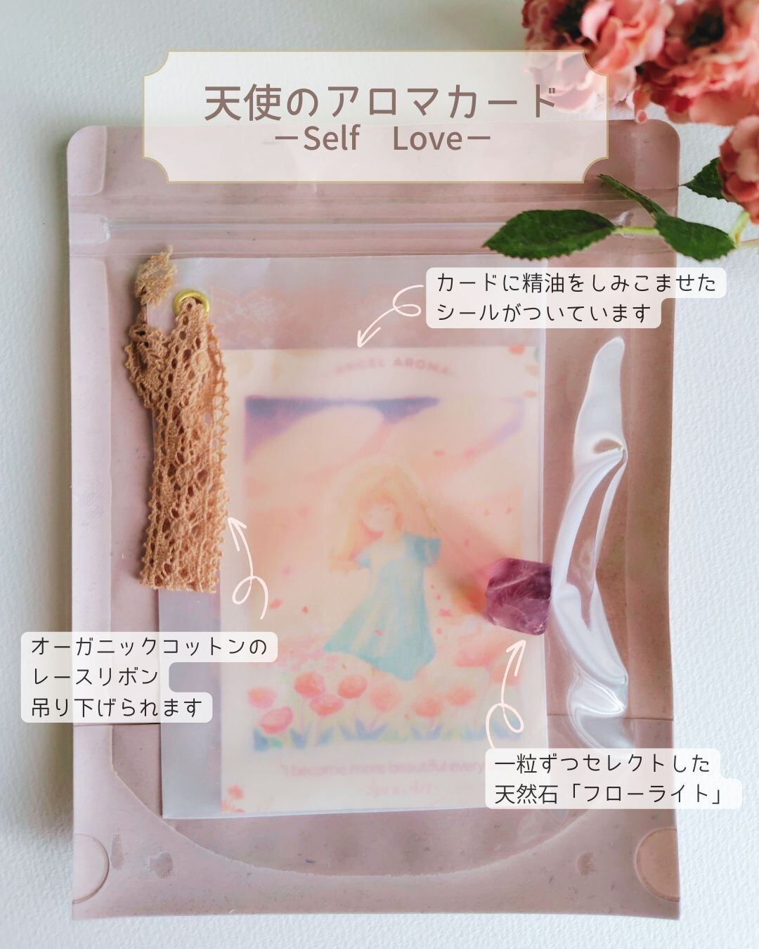 自分自身を愛し、癒しのひとときを大切にしたい方にぴったりな、天使のアロマカード「セルフラブ・フローライト」をお贈りします。