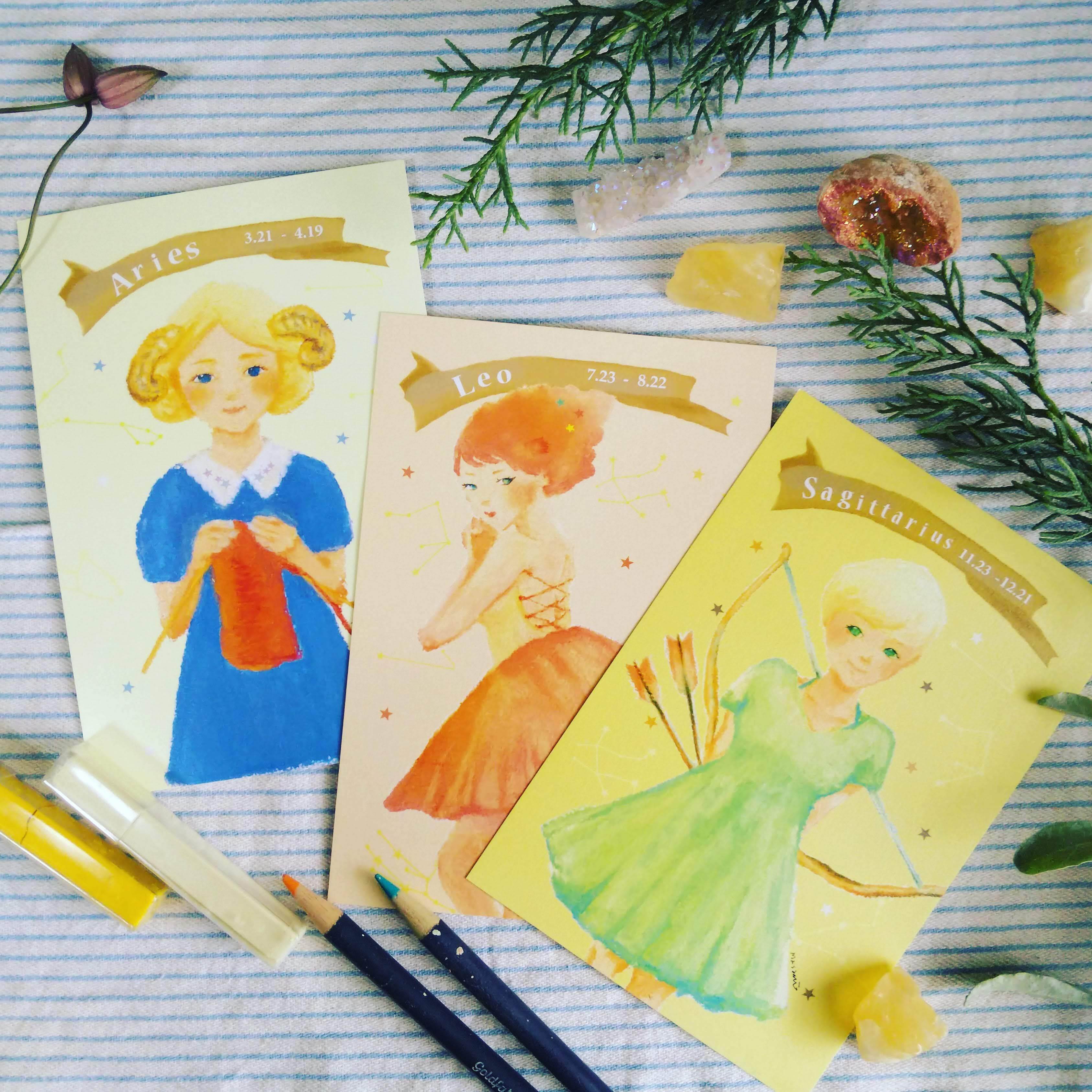 12星座ポストカード 火の星座3種セット☆プチリーディング&ムーンサイクルカード付